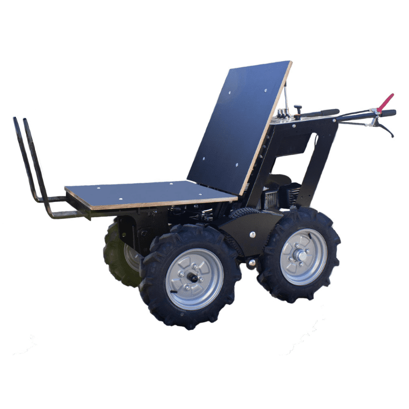 The H-Max Flatbed sits above the wheels so that “oversized” loads like pots, paving slabs, bags of sand/cement/compost, drainage pipes, or ornaments can be carried with ease.